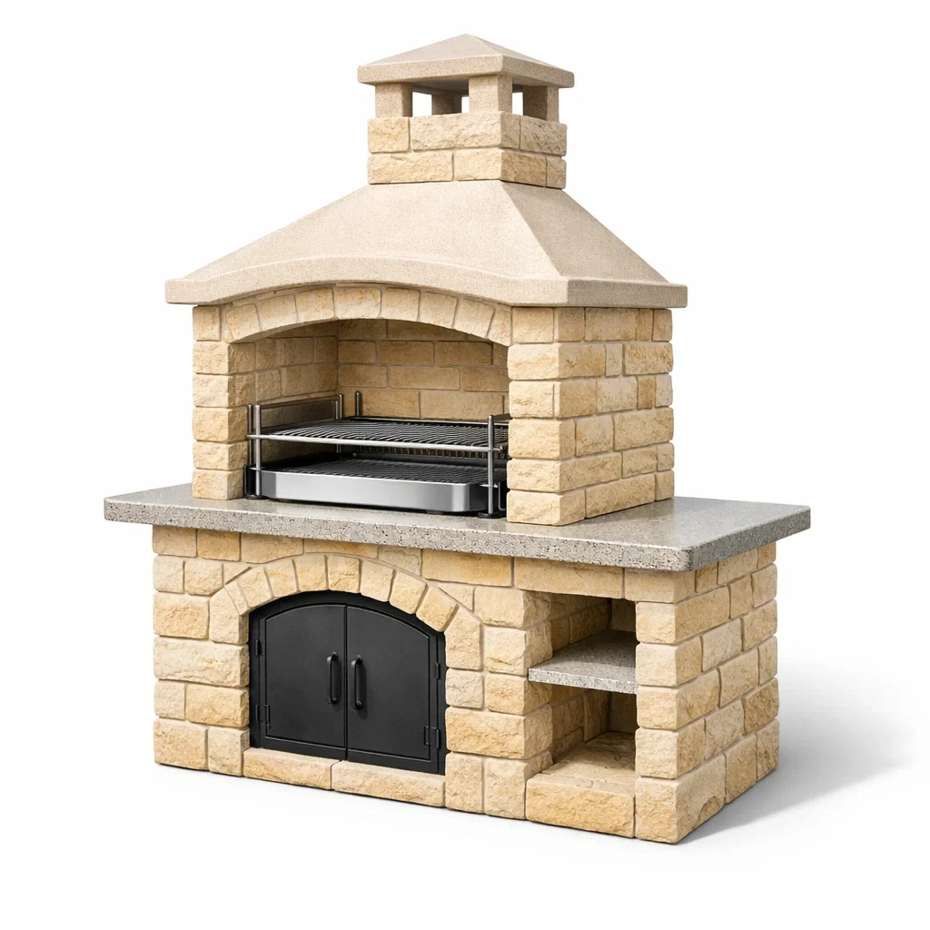 Barbecue en pierre composite et acier inoxydable avec cheminée