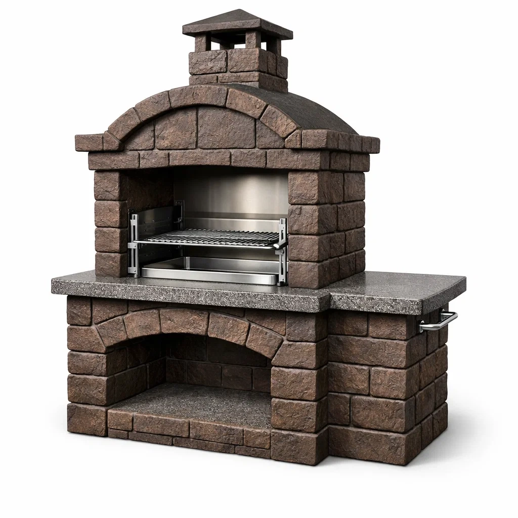 Barbecue en pierre marron avec grille en acier inoxydable