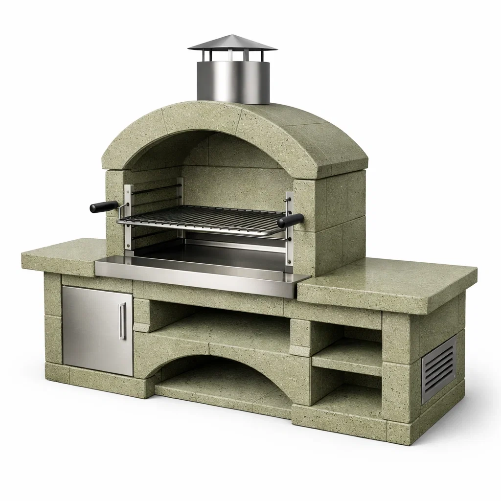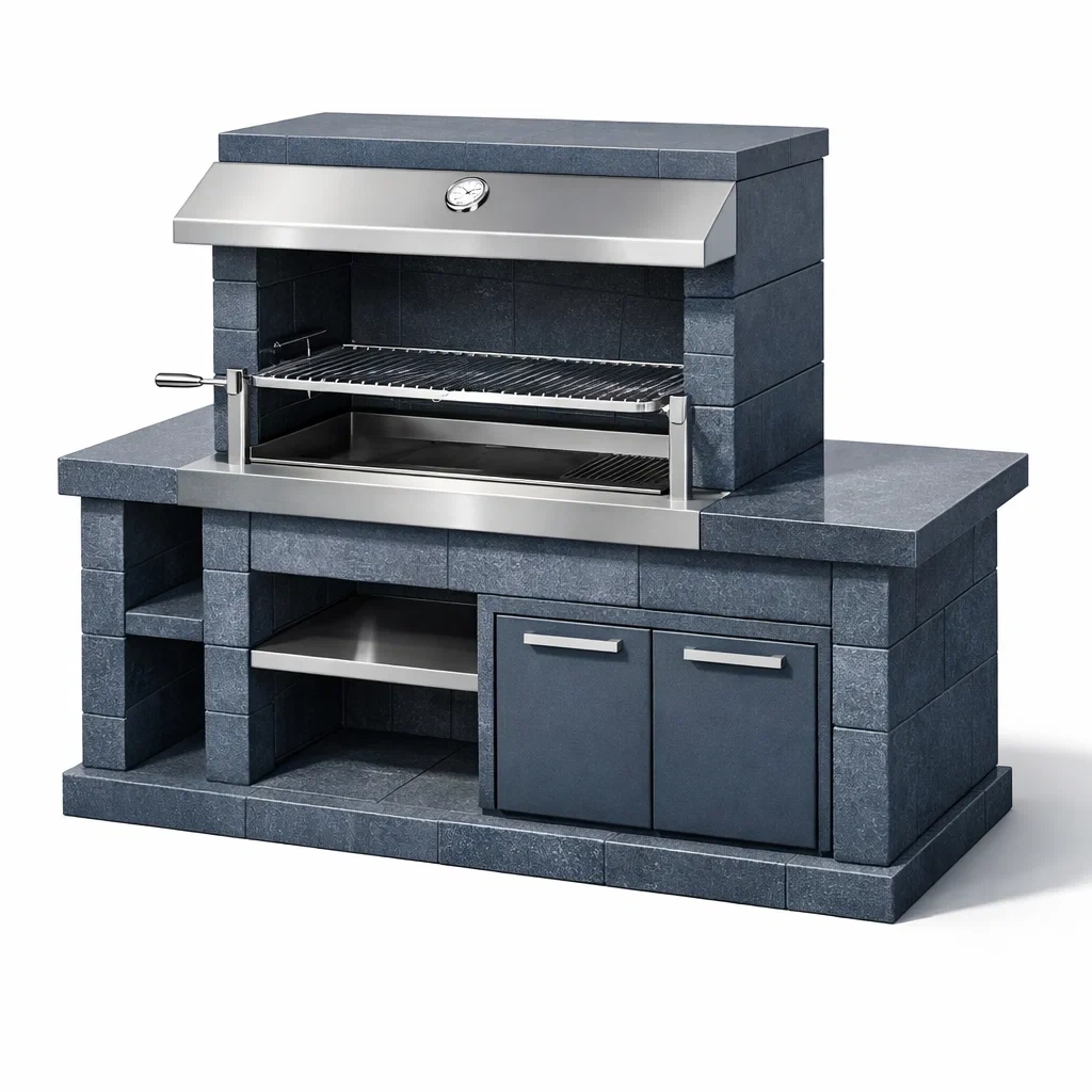 Barbecue en pierre reconstituée et acier inoxydable