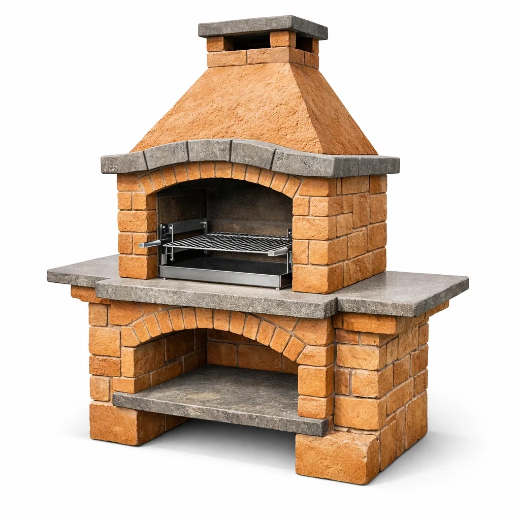 Barbecue en briques avec cheminée et grille en acier inoxydable