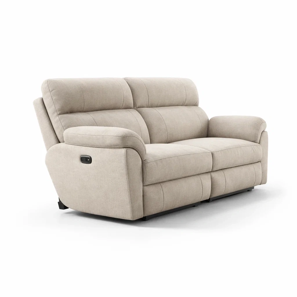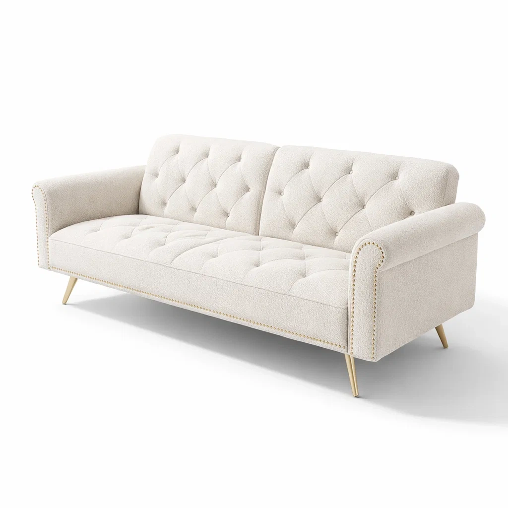 Canapé deux places en tissu polyester beige avec pieds en métal doré