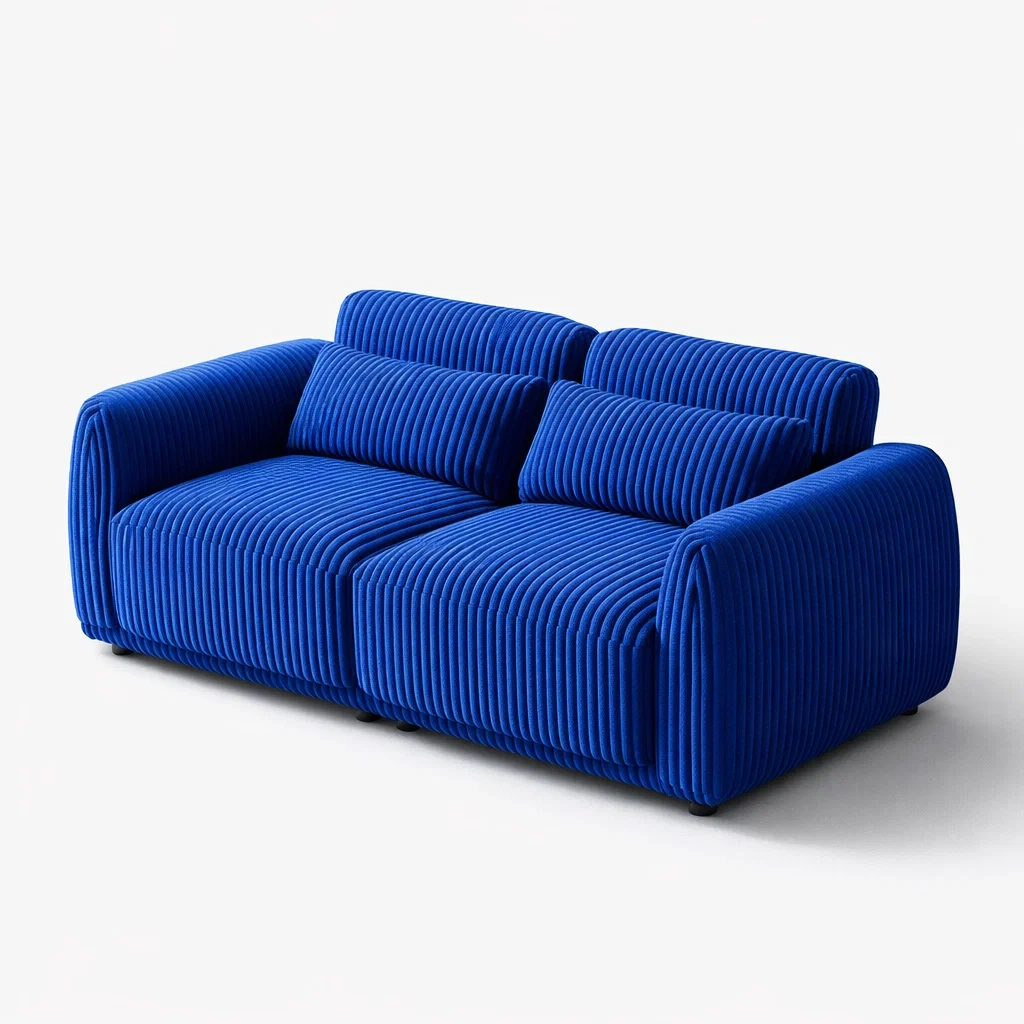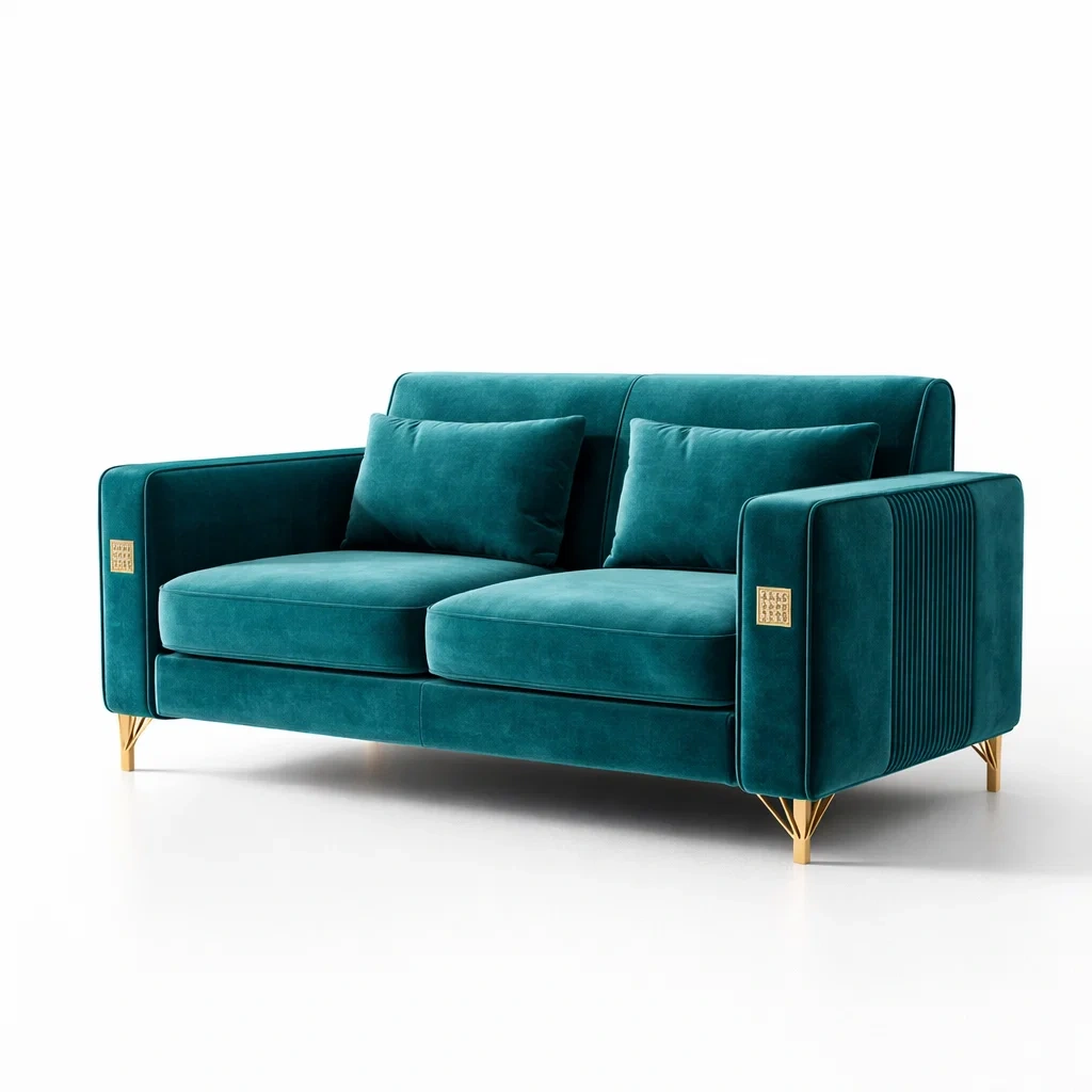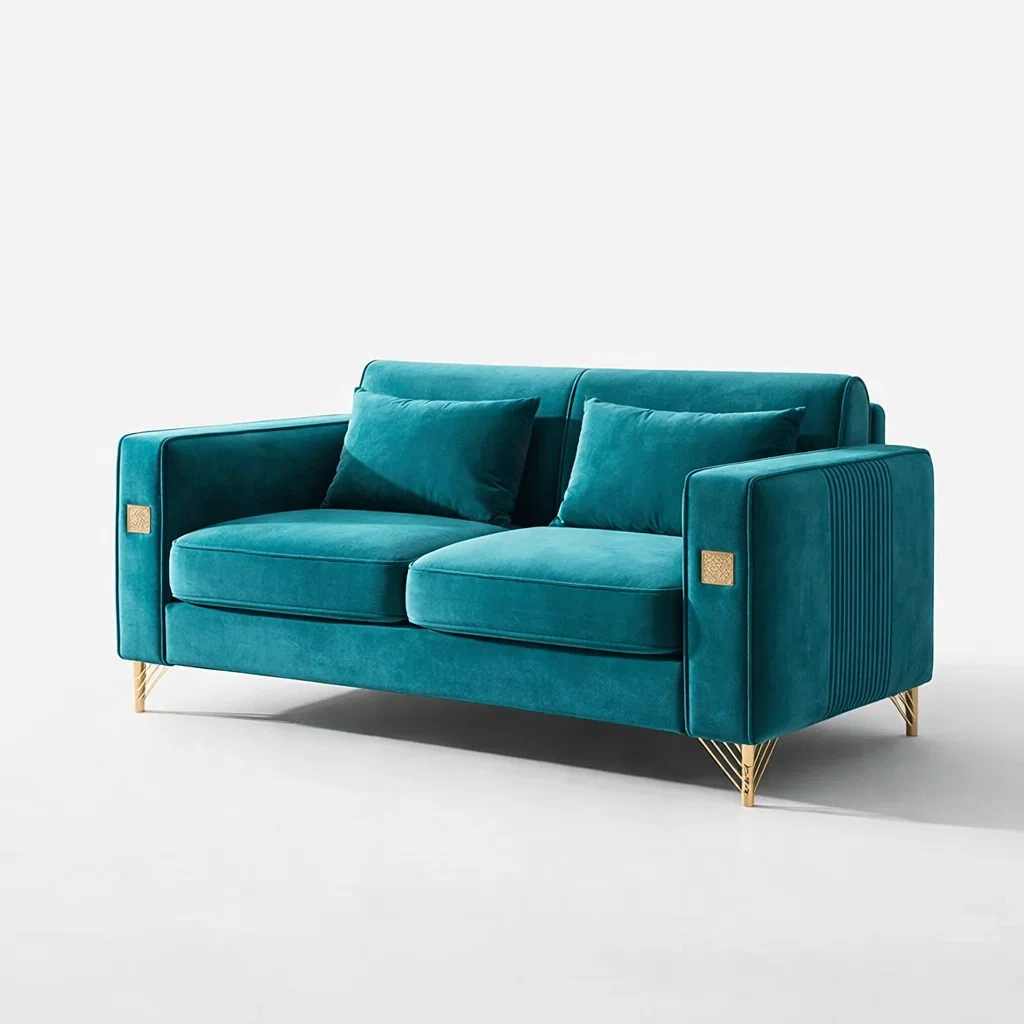 Canapé deux places en velours bleu pétrole avec pieds en métal